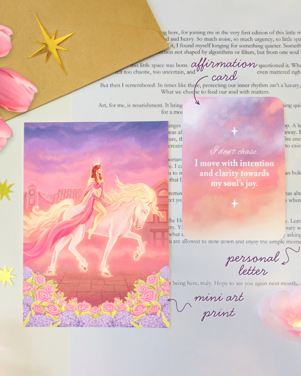 My work blends storytelling with mystical and archetypal themes, creating visuals that invite reflection, and introspection. I specialize in projects that explore spirituality, self-discovery, and feminine empowerment, from oracle decks to book covers, editorial, and product collaborations.